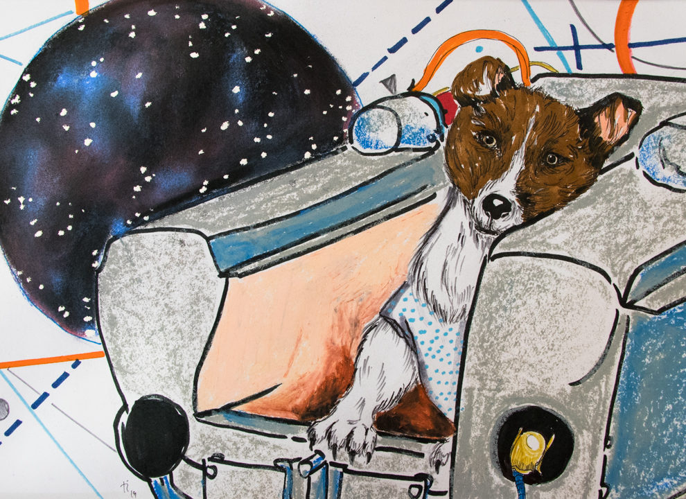 Some familiar faces greeted us with a smile, from a stellar stage mixed with touches honoring the legacy of Vasily Kandinsky Abstract. Spotlight, cosmonaut Yuri Gagarin's pioneering, followed by Valentina Tereshkova, the first woman cosmonaut, y Svetlana Savitskaya, who performed the first spacewalk. Later, Laika tender, Belka y Strelka. They had come back to life, through the hands of Mexican artist Daniela Oliveros.
